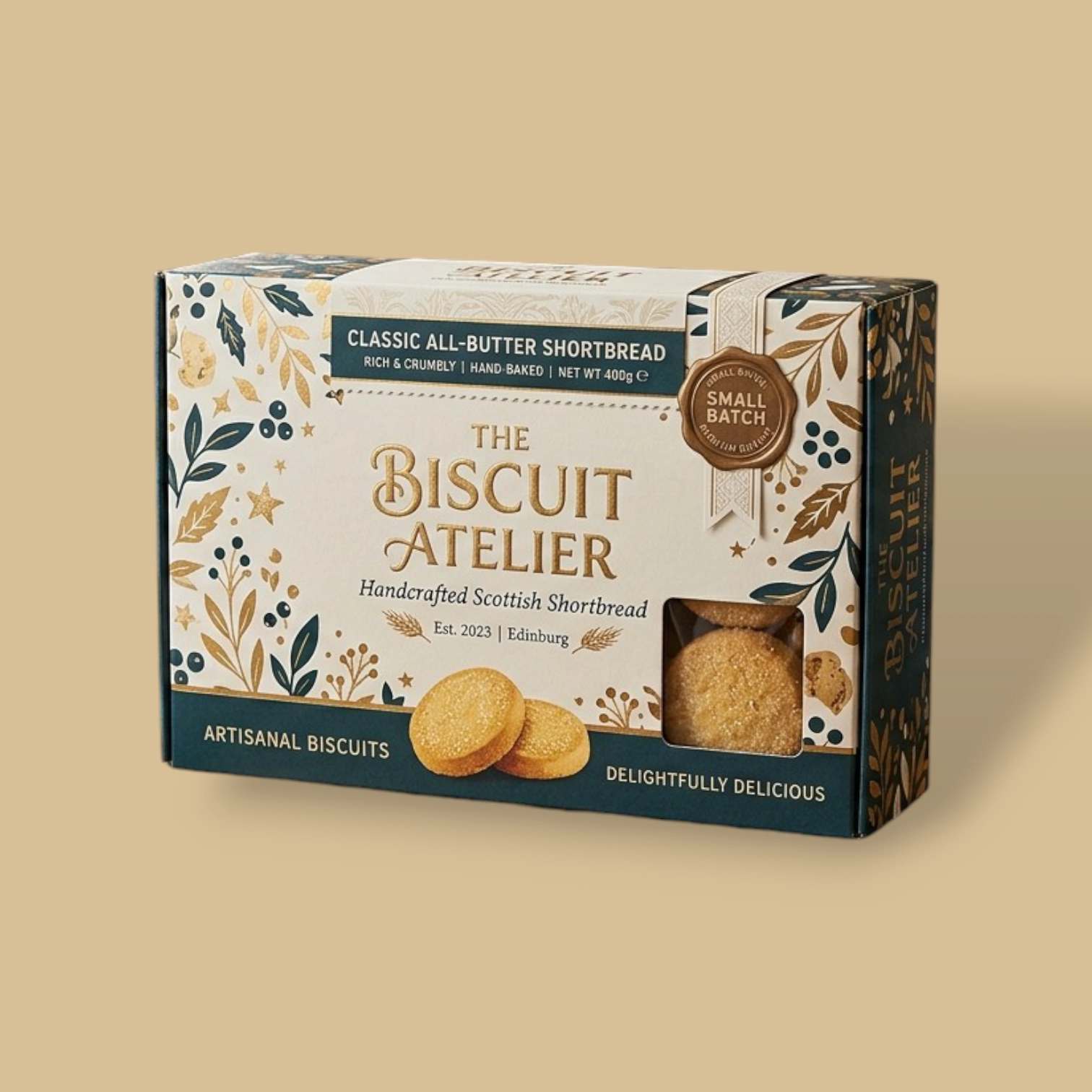 Luxury packaging for high-end biscuit collections.